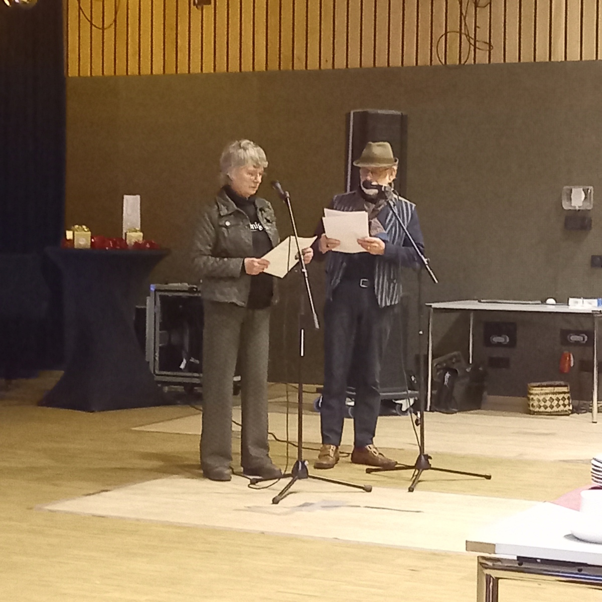 Een duo dat op humoristische wijze het publiek goed wist te pakken. Tussendoor werd er koffie met lekker kerstbrood, een drankje en verschillende hapjes geserveerd. De middag werd afgesloten met een tombola waarin hele mooie prijzen waren te winnen.