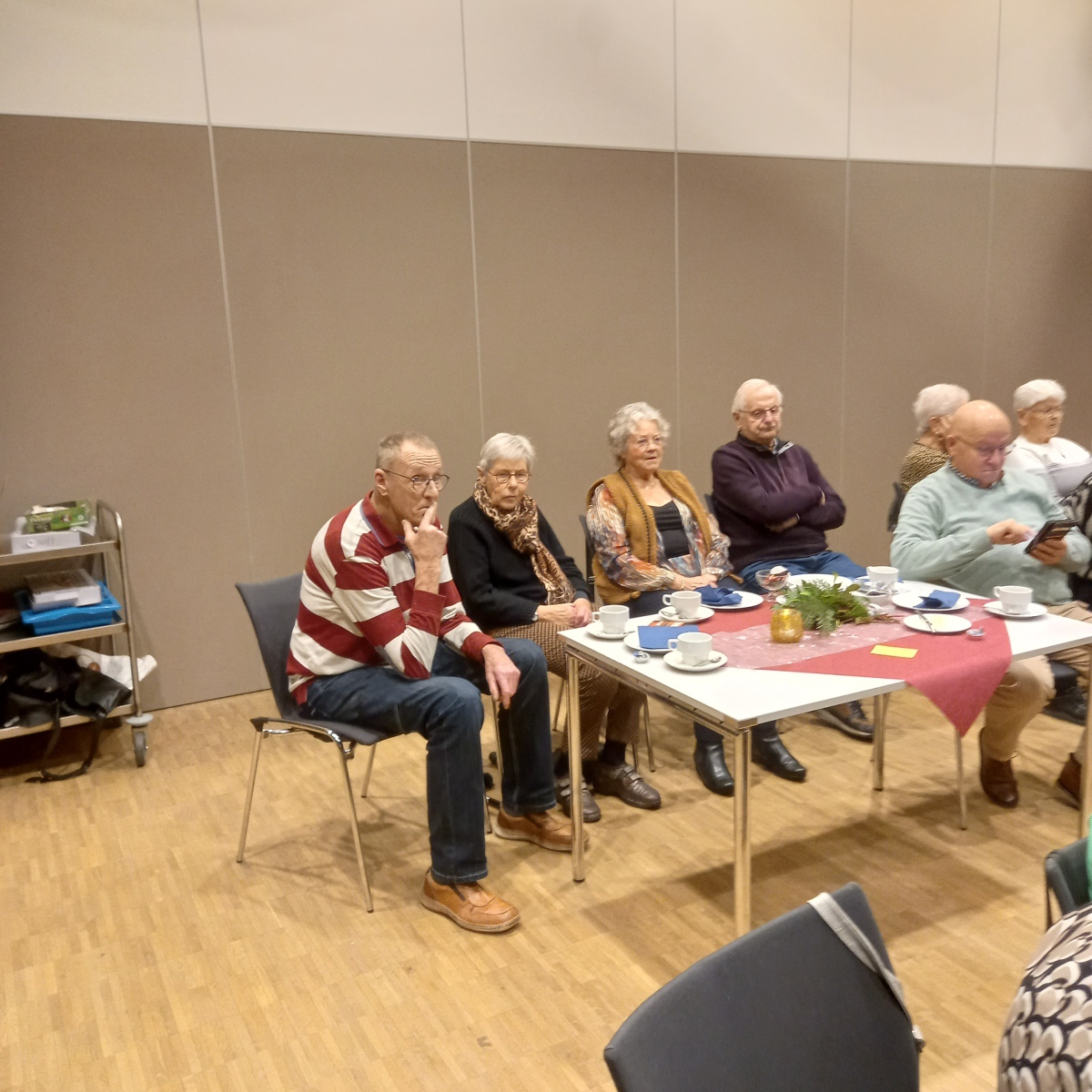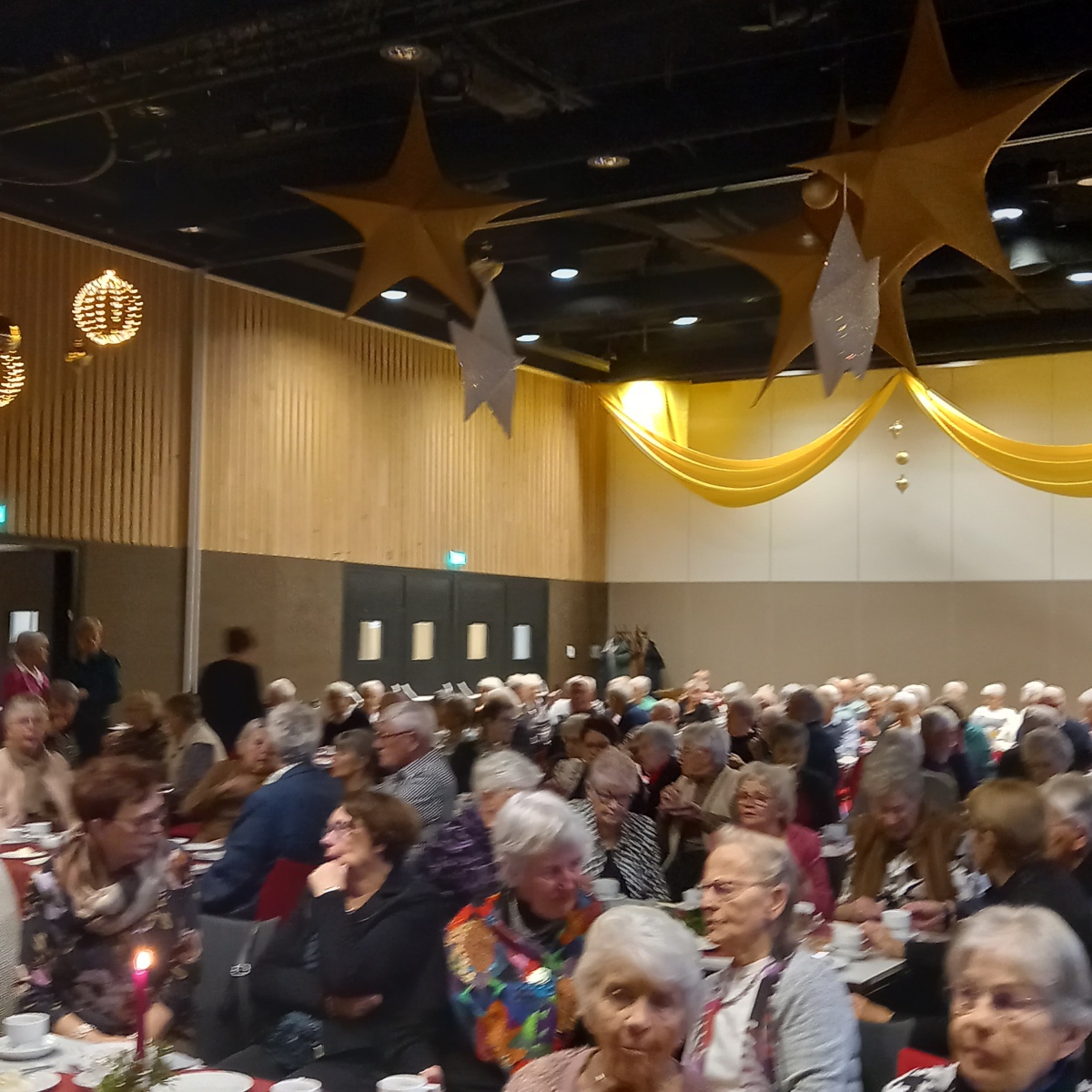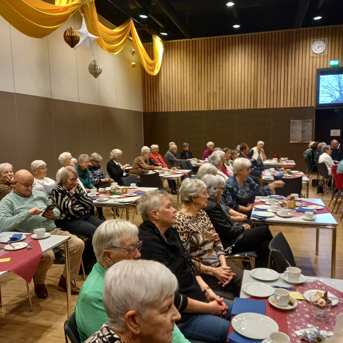 Het was een drukbezochte en hele gezellige middag. Na het kerstverhaal in de tegenwoordige tijd, door Paulien Sprenger en Frans Wijnen, werd het publiek vermaakt door het duo Twiej Tieje.