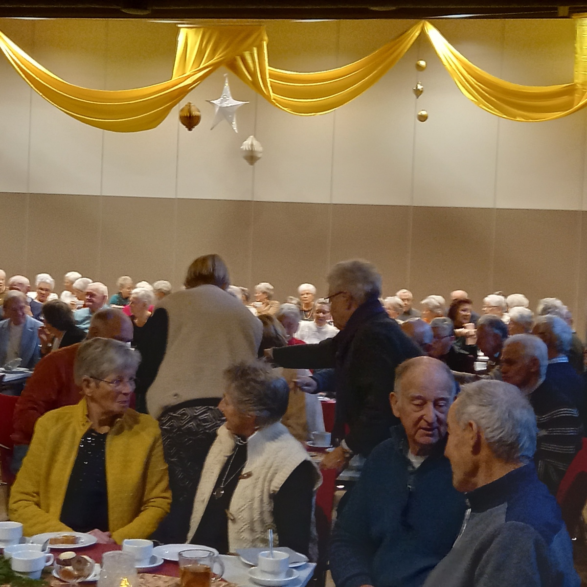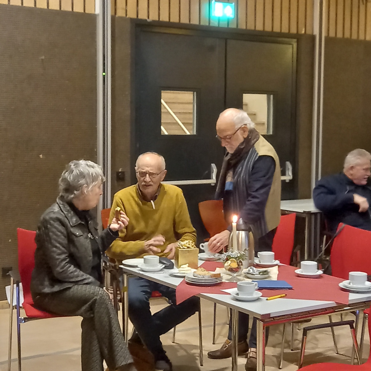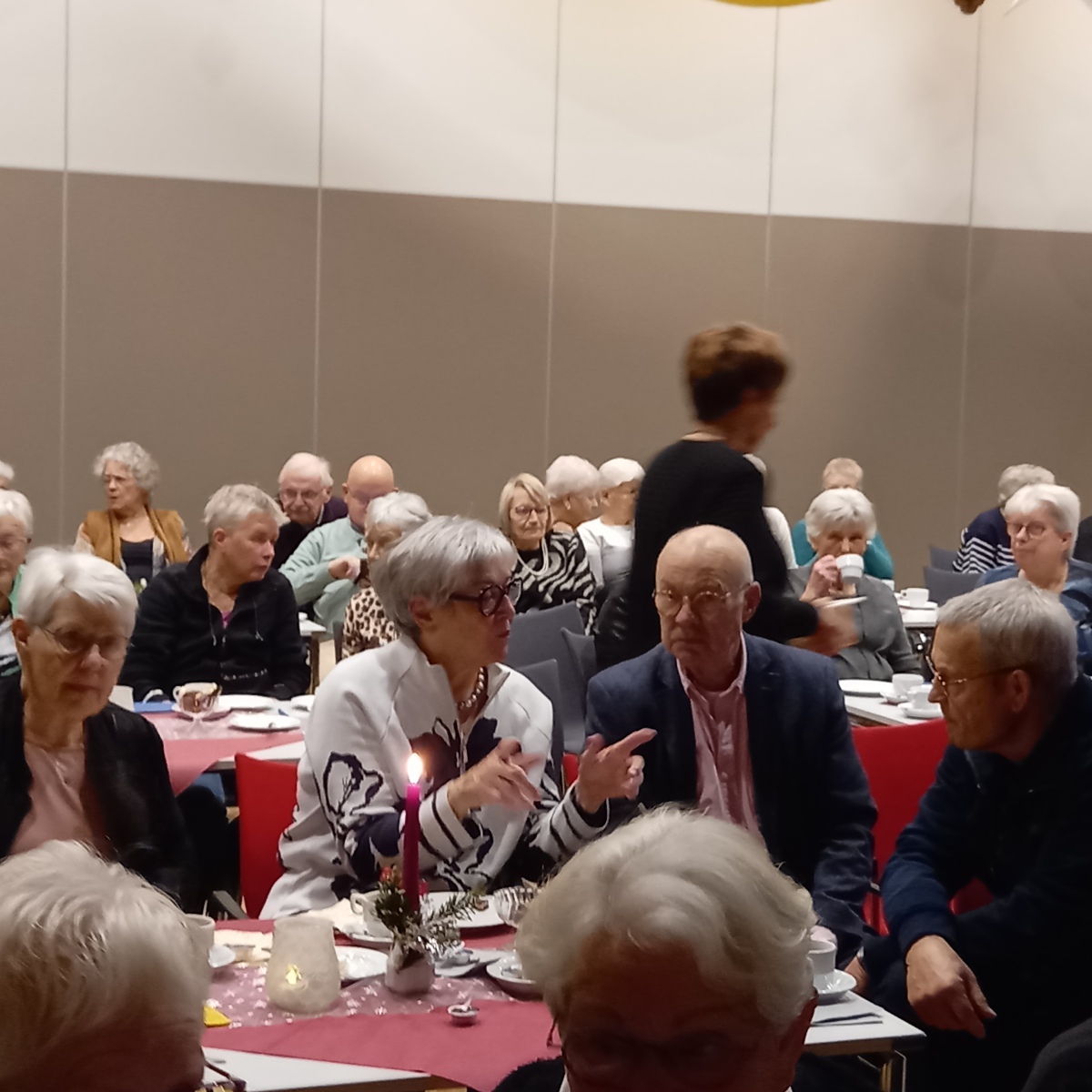 Het was een drukbezochte en hele gezellige middag. Na het kerstverhaal in de tegenwoordige tijd, door Paulien Sprenger en Frans Wijnen, werd het publiek vermaakt door het duo Twiej Tieje.